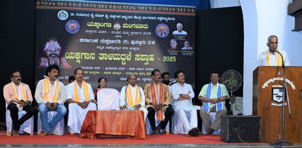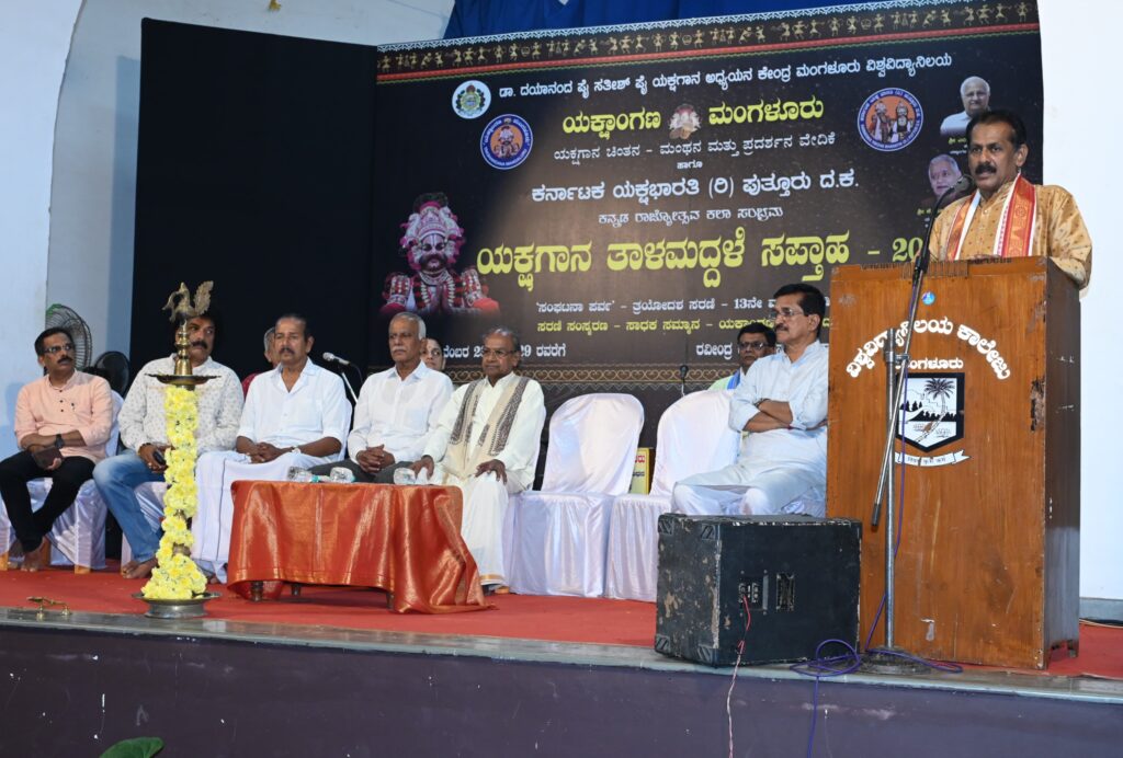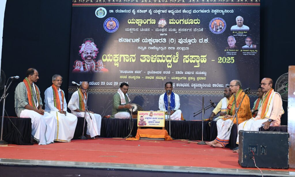 ಯಕ್ಷಾಂಗಣ ಮಂಗಳೂರು, ಯಕ್ಷಗಾನ ಚಿಂತನ – ಮಂಥನ ಮತ್ತು ಪ್ರದರ್ಶನ ವೇದಿಕೆಯು ಮಂಗಳೂರು ವಿ.ವಿ.ಡಾ|ದಯಾನಂದ ಪೈ, ಶ್ರೀ ಸತೀಶ್ ಪೈ ಯಕ್ಷಗಾನ ಅಧ್ಯಯನ ಕೇಂದ್ರ ಮತ್ತು ಕರ್ನಾಟಕ ಯಕ್ಷ ಭಾರತಿ (ರಿ.) ಪುತ್ತೂರು ಇವರ ಸಹಯೋಗದೊಂದಿಗೆ ನ. 23 ರಿಂದ 29 ರವರೆಗೆ ಮಂಗಳೂರು ವಿವಿ ಕಾಲೇಜಿನ ರವೀಂದ್ರ ಕಲಾಭವನದಲ್ಲಿ ಜರಗಿದ ಕರ್ನಾಟಕ ರಾಜ್ಯೋತ್ಸವ ಕಲಾ ಸಂಭ್ರಮದ ‘ಯಕ್ಷಗಾನ ತಾಳಮದ್ದಳೆ – 2025’ ಹದಿಮೂರನೇ ವರ್ಷದ ನುಡಿ ಹಬ್ಬ, ತ್ರಯೋದಶ ಸರಣಿಯ ಸಮಾರೋಪ ಸಮಾರಂಭದಲ್ಲಿ ಅಧ್ಯಕ್ಷತೆ ವಹಿಸಿ ಅವರು ಮಾತನಾಡಿದರು. ಕನ್ನಡ ಸಾಹಿತ್ಯ ಪರಿಷತ್ತಿನ ಮಾಜಿ ರಾಜ್ಯಾಧ್ಯಕ್ಷ ಡಾ. ಹರಿಕೃಷ್ಣ ಪುನರೂರು ದೀಪ ಬೆಳಗಿ ಕಾರ್ಯಕ್ರಮಕ್ಕೆ ಚಾಲನೆ ನೀಡಿದರು.